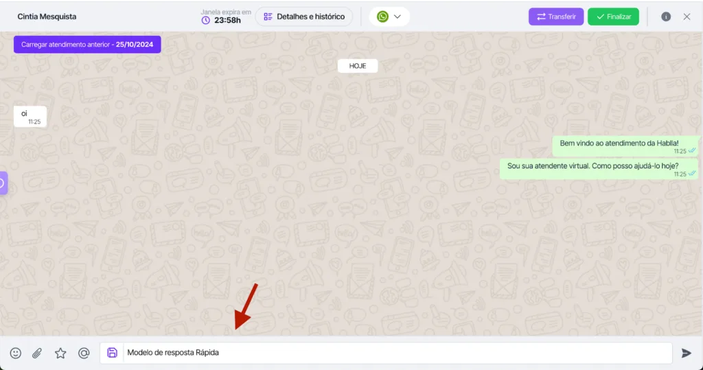 8\. **Choisissez la réponse souhaitée :** après avoir cliqué sur l'icône, une liste de vos réponses rapides s'affichera. Il vous suffit de sélectionner le message souhaité, et il sera automatiquement inséré dans le champ de message, prêt à être envoyé.\ <br>