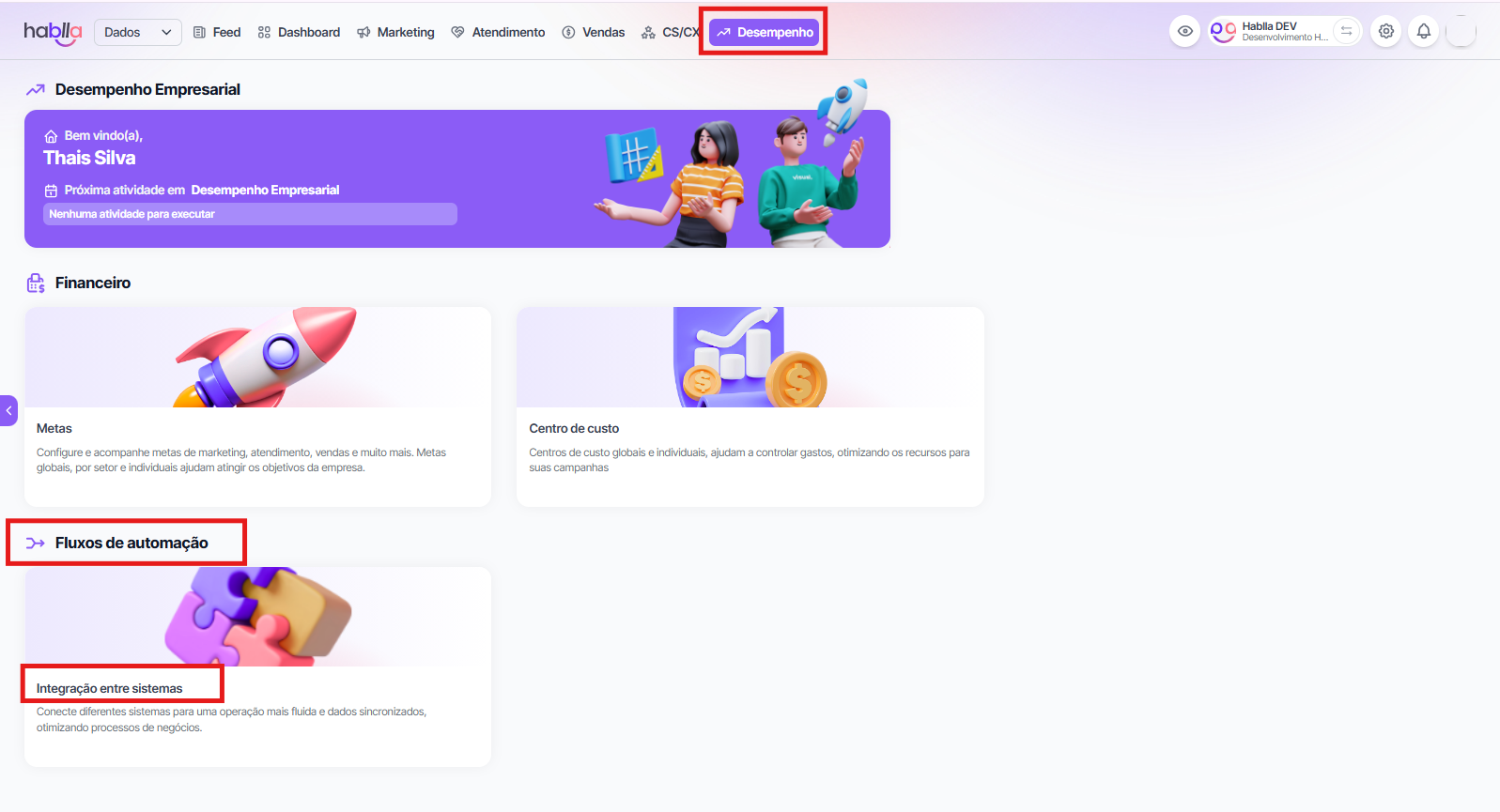 At Hablla, automation flows are organized into different areas of the system. Each department has a specific place for management and monitoring.