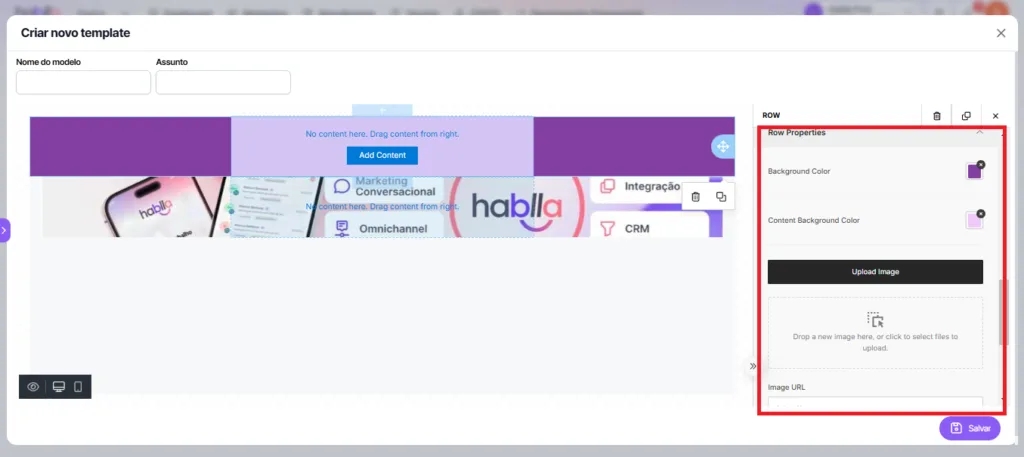 4. In Row Properties you can configure the row in which that column is. You can set the row background color, the content background color, add a background image, and set the padding.