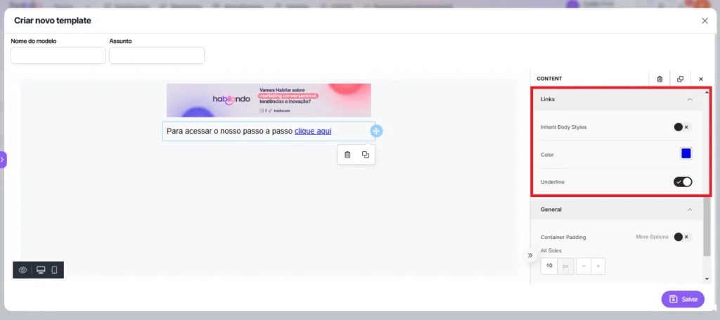 First step: accessing the template creation area to customize your email template