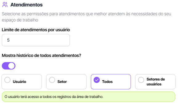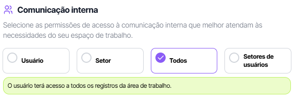 **Todos** - El usuario tendrá acceso a todos los registros del espacio de trabajo.