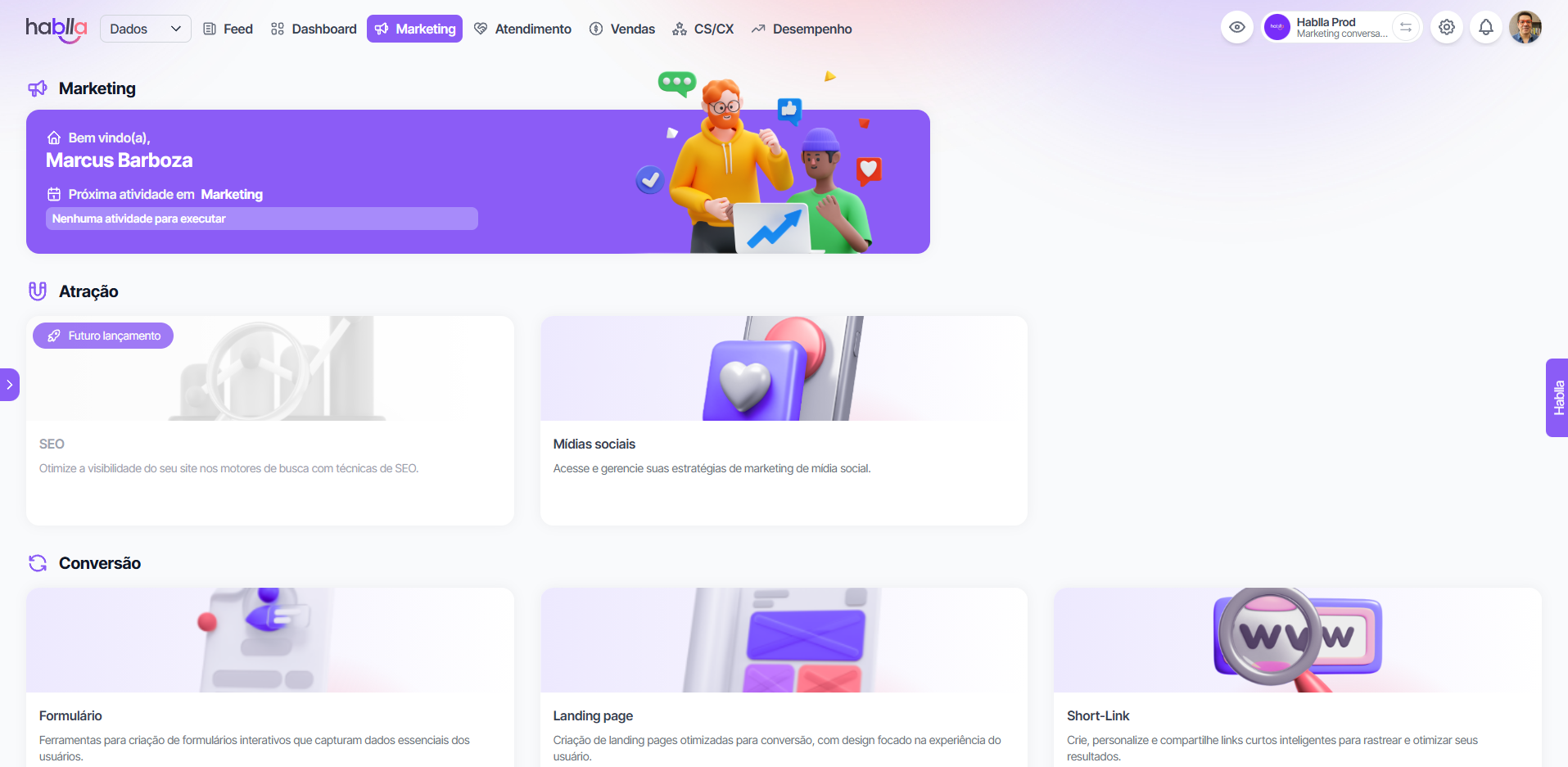 El módulo de Marketing de Hablla fue diseñado para ser el **hub de crecimiento previsible de tu empresa**.\