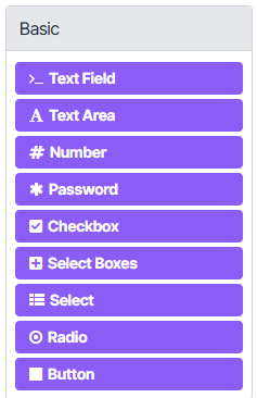Configure cada campo mediante las pestañas Display, Data, Validation, API, Conditional, Logic, Layout.