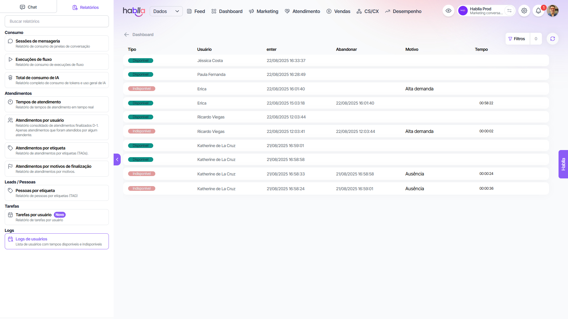 💡 **Insight estratégico:** El **Registros de los Usuarios** cierra la trilogía de informes de Hablla. Conecta el nivel **operativo (estado del agente)** con el **estratégico (impacto en el recorrido del cliente)**, consolidando la **visión 360º de la operación conversacional**.