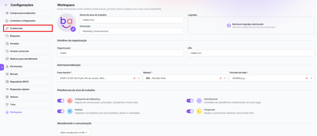 Automatização de processos: ao conectar a plataforma a outros serviços, as credenciais possibilitam a automação de tarefas, como o envio de mensagens automáticas, o registro de interações e o acompanhamento de leads em um CRM.